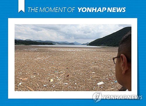 (하남=연합뉴스) 이진욱 기자 = 22일 경기도 하남시 팔당댐 부근에 상류에서 떠내려온 쓰레기가 모여 있다. 2025.7.22 [THE MOMENT OF YONHAPNEWS]