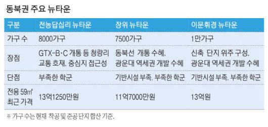 이문휘경 뉴타운은 동북권에서 최근 가장 주목받는 곳이다. 재개발 사업을 통해 신축 단지로 탈바꿈한 래미안 라그란데, 휘경자이 디센시아, 이문아이파크자이 등 3개 단지 약 9000가구가 올해 한꺼번에 들어서며 이 일대를 신축 주거단지로 변모시켰기 때문이다. 이와 함께 광운대 역세권 개발사업이 진행되며 지하철로 약 2정거장 떨어진 이문휘경 뉴타운도 간접 수혜를 받을 것으로 예상된다.