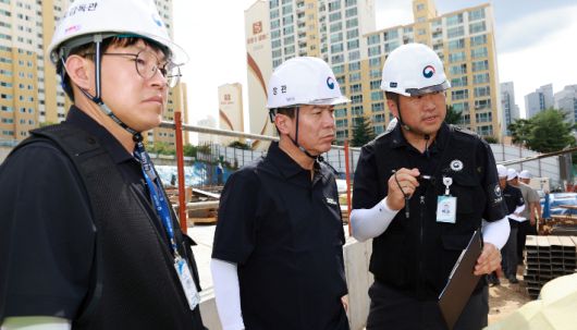 김 장관은 이날 오후 오후 3시쯤 현장을 찾아 추락사고 예방에 중점을 두고 현장을 직접 둘러보며 핵심 안전수칙 이행 여부를 집중적으로 확인했다.