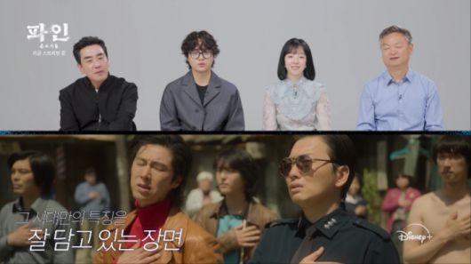 22일 디즈니+ 코리아 유튜브 채널에 공개된 '파인 코멘터리' 영상에 따르면 강윤성 감독을 비롯해 류승룡, 양세종, 임수정은 공개된 1~3회 영상을 함께 보며 촬영 당시 뒷얘기를 전했다.