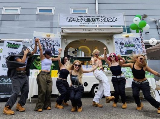 커피차에는 "미도리즈(오죠갱 팬덤명)도 전력으로 보답할게"라는 글귀가 적혔으며 다양한 선물과 간식이 준비되어 있다.