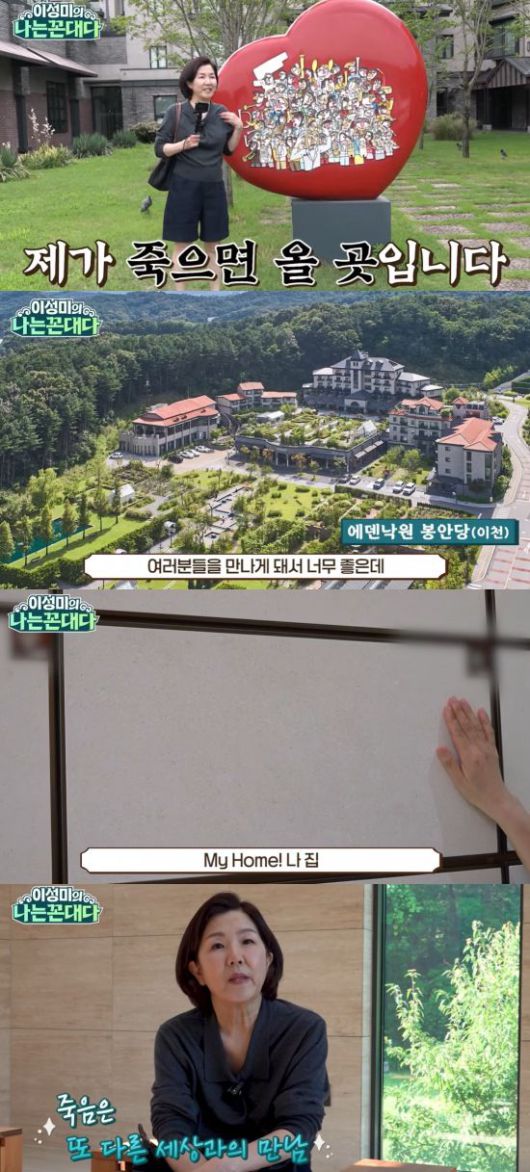 영상에서 이성미는 "내가 죽으면 올 곳"이라며 경기도 이천에 위치한 봉안당을 소개했다.