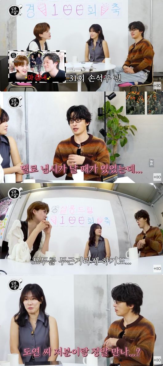 구교환은 ‘살롱드립’에서 포착된 멜로의 기운에 대해서도 언급했다. 이옥섭과 구교환은 장도연을 이상형으로 꼽았던 손석구의 출연 분에 대해 언급하면서, “방송 보다 보면 멜로 냄새가 날 때가 있다. 저도 막 두근두근할 때가 있다. 그래서 나한테 ‘도연 씨 저 분이랑 진짜 만나?’라고 물어본 적이 있다”라고 말문을 열었다.
