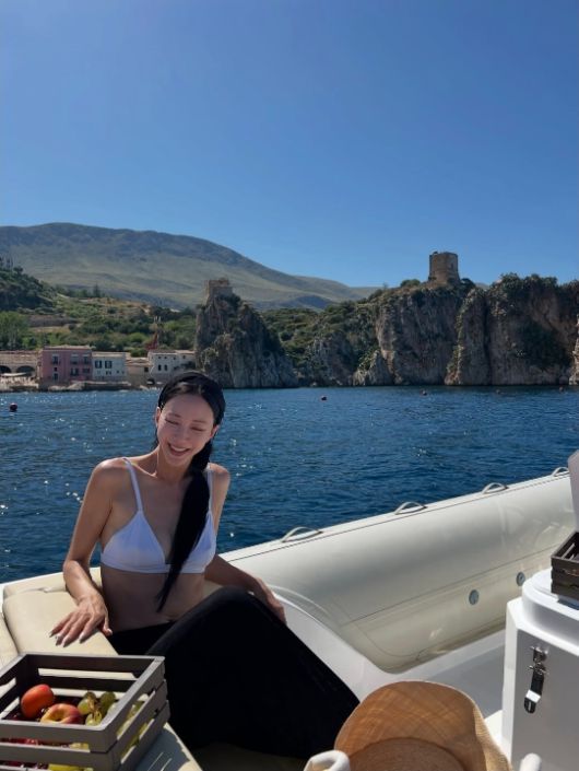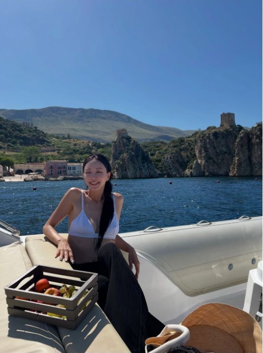 공개된 사진 속 한예슬은 지중해 바다 위 요트에 앉아 시원한 여름을 만끽하는 모습이었다.