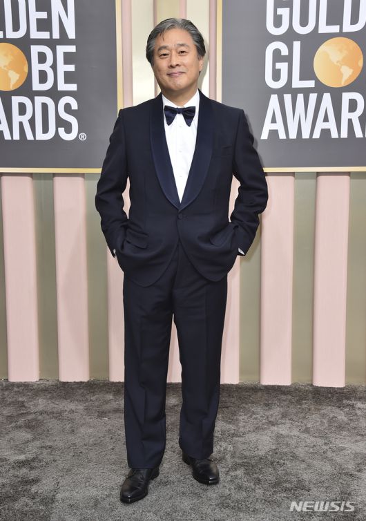 [로스앤젤레스=AP/뉴시스] 영화 '헤어질 결심'의 박찬욱 감독이 10일(현지시간) 미 캘리포니아주 로스앤젤레스의 베벌리 힐튼 호텔에서 열리는 제80회 골든 글로브 시상식에 도착해 포토타임을 갖고 있다. '헤어질 결심'은 비영어권 작품상 후보에 올라가 있다. 2023.01.11. |
