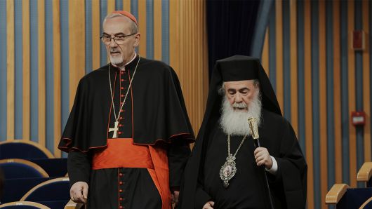 지난 17일 가자지구의 유일한 가톨릭교회인 성가족성당이 폭격당해 3명이 숨지는 사건이 발생하자 피자발라 추기경과 테오필로스 3세는 가자지구를 찾아 고통받는 주민들을 위로하고 인도적 상황을 직접 확인했습니다.