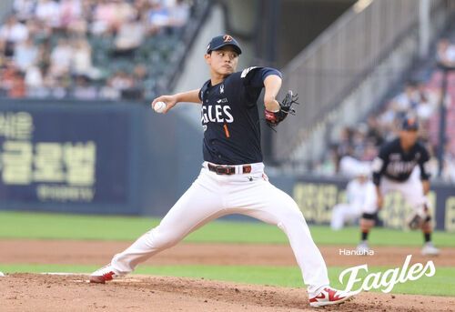 ▲ 쾌투하는 한화의 선발 투수 문동주