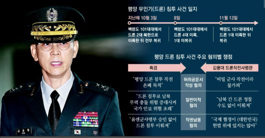 대북 드론 침투는 북한이 한국군 드론이 또 발견되면 참변이 벌어질 것이라고 경고한 뒤에도 계속됐다. “무리해서라도 계속하려 하는구나 싶었다”는 현역 장교의 녹취도 있었다. 북한과의 무력 충돌 위험까지 무릅쓴 작전이 감행됐다면 군 통수권자의 지시나 승인 없이는 불가능한 일이다. 당시의 석연찮은 상황에 대한 부하들의 증언이 이어지고 있음에도 김 사령관은 배후에 대해서는 납득할 만한 진술을 내놓지 않고 있다. 누구 지시로 이런 위험천만한 작전이 벌어진 것인지 특검이 철저히 규명해야 한다.