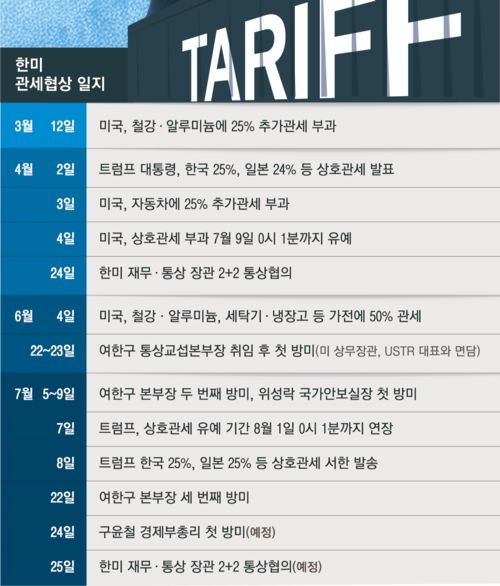 도널드 트럼프 대통령이 설정한 상호관세 유예시간 종료 일주일을 앞두고 한미 양국 재무·통상 장관이 2+2 통상협의를 25일 개최한다. 며칠이 걸릴지 모를 이번 회의가 사실상 최종 담판이다.