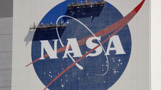 ▲ 미국 플로리다 케네디우주센터의 외벽에 그려진 NASA 로고