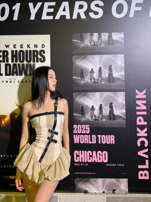 지난 22일 지수는 자신의 SNS에 시카고 팬들에게 전하는 감사의 인사와 함께 지난 18일 시카고에서 열린 'BLACKPINK WORLD TOUR'의 비하인드 컷을 공개했다.