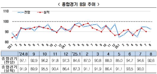 美 관세폭탄 우려에 8월 BSI 92.6…3년 5개월째 기준선 하회
