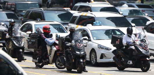 지난달 9일 서울 강남역 사거리에서 배달라이더들이 교통신호를 기다리고 있다. 연합뉴스. |