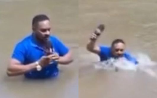 프라자오는 수심과 강바닥 지형을 설명하기 위해 허리까지 물이 차오르는 강물 속으로 직접 들어갔다.
