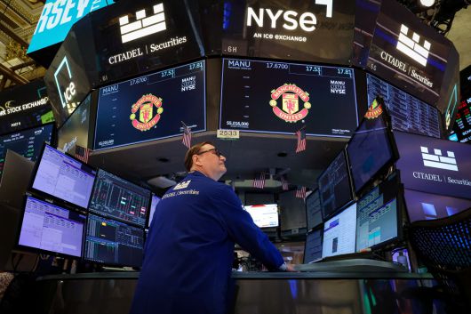 미국 뉴욕증권거래소(NYSE)에서 트레이더가 근무하고 있다. |