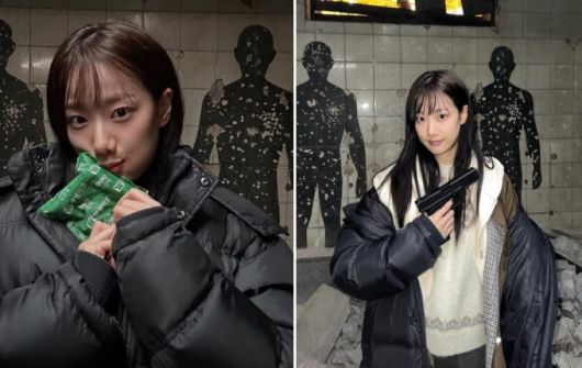 사진 속 이나은은 촬영용 총을 들고 다양한 포즈를 취하고 있다. 그는 추운 날씨에 촬영에 임한 듯 핫팩을 손에 쥐고 두꺼운 패딩 점퍼를 여러 겹 입고 있어 눈길을 끈다.
