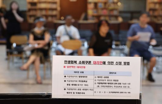 민생회복 소비쿠폰 신청이 시작된 21일 서울 동작구 대방동주민센터 작은도서관에서 시민들이 소비쿠폰 신청 순서를 기다리고 있다. 신태현 기자 holjjak@ |