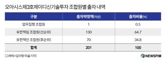 오아시스3호펀드는 선순위 130억원과 후순위 70억원 투자구조로 결성됐다. 한국증권금융(50억원), 카카오모빌리티(30억원), 신한은행(30억원), 키움증권(10억원), JB우리캐피탈(10억원) 등은 선순위 유한책임조합원으로 참여했고, HS효성은 조영탁 IMS모빌리티 대표, 유니크, 경남스틸 등과 함께 후순위 유한책임조합원으로 참여했다.