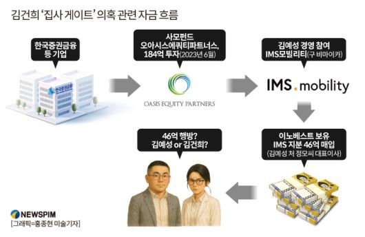 23일 김건희 특검팀(특별검사 민중기)과 금융투자업계 등에 따르면 IMS모빌리티를 향한 184억원의 투자금은 오아시스에쿼티파트너스가 조성한 오아시스제3호제이디신기술투자(오아시스3호펀드)를 통해 투자됐다.