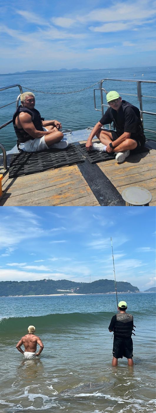 공개된 사진 속 하정우는 추성훈과 바다낚시를 떠난 듯 함께 바다를 배경으로 앉아있어 눈길을 끈다.