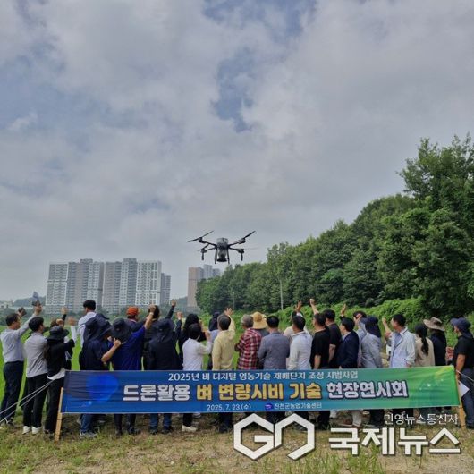 (진천=국제뉴스) 이재기 기자 = 충북 진천군농업기술센터(소장 남기순)는 덕산읍 신척리 시범단지에서 '드론활용 벼 변량시비 기술 현장연시회'를 개최했다고 23일 밝혔다.