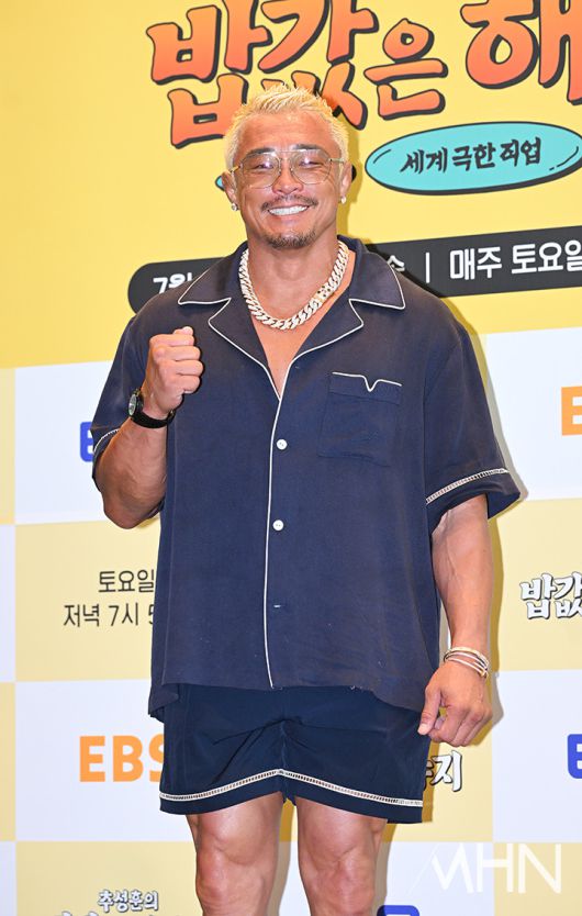 (MHN 이현지 기자) 방송인 추성훈이 23일 서울 여의도 TWO IFC에서 진행된 ENA, EBS 공동제작 '추성훈의 밥값은 해야지' 제작발표회에 참석해 포토타임을 갖고 있다.