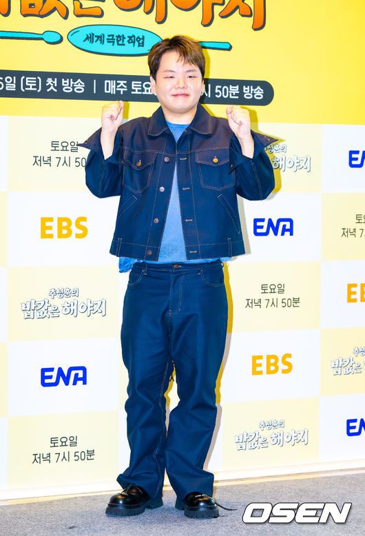 오는 26일 오후 7시 50분에 첫 방송될 EBS, ENA 공동제작 '추성훈의 밥값은 해야지'는 '아조씨' 추성훈이 세계 극한 직업에 도전하고 땀 흘려 번 밥값만큼 즐기는 현지 밀착 리얼 생존 여행기로 이날 행사에는 추성훈, 곽준빈, 이은지, 송준섭 PD, 안제민 PD가 참석했다.
