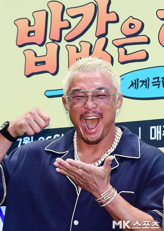 방송인 추성훈이 23일 서울 여의도 TWO IFC에서 진행된 ENA, EBS 공동제작 ‘추성훈의 밥값은 해야지’ 제작발표회에 참석해 포즈를 취하고 있다.