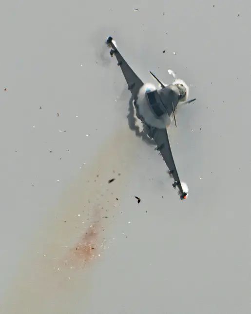 당시 고공비행을 펼치고 있던 유로파이터 타이푼 전투기가 갈매기와 충돌했으며, 이 충격으로 조종석 덮개가 산산조각 나면서 앞 유리에 큰 파손이 생겼습니다.