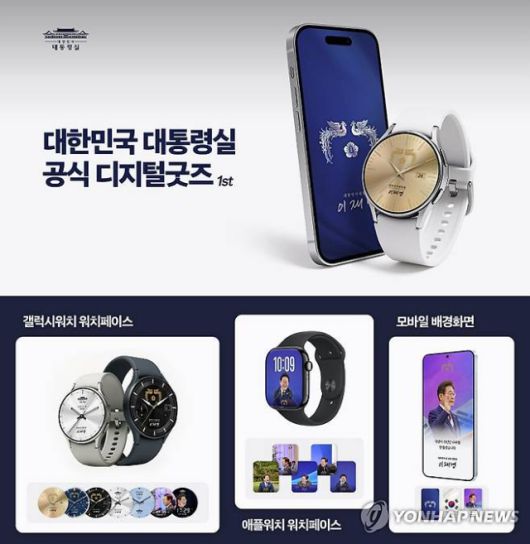 이재명 대통령 취임 50일을 기념해 대통령실은 스마트폰·스마트워치용 ‘디지털 굿즈’ 총 14종을 공식 공개하고 국민에게 배포한다고 23일 밝혔다. 박정희 전 대통령 이후로 대통령 시계가 취임 직후 기념품으로 제작됐지만 스마트폰과 워치에 맞춤형으로 제작된 것은 이번이 처음이다.