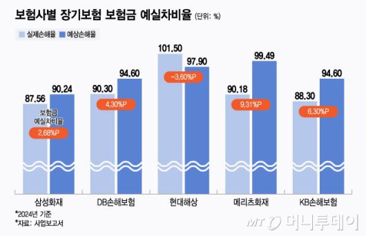 보험사별 장기보험 보험금 예실차비율/그래픽=윤선정 |