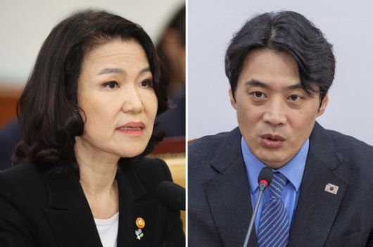 이진숙 방송통신위원장(왼쪽), 한준호 더불어민주당 의원. 〈사진=연합뉴스〉 |