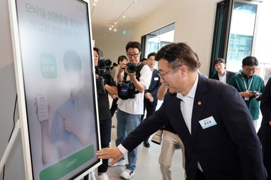 윤호중 행정안전부 장관이 23일 서울시 성수동에서 열린 ‘모바일 신분증 민간개방 오픈 행사’에서 이같이 밝혔다. 모바일 신분증 민간 앱 서비스는 모바일 신분증을 국민이 일상생활에서 자주 사용하는 민간 앱을 통해 발급받아 사용할 수 있는 서비스다.