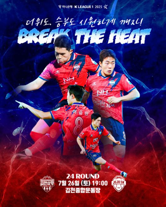 김천상무프로축구단(대표이사 이재하)이 7월 26일 토요일 19시, 김천종합운동장에서 제주SK FC(이하 제주)와 '하나은행 K리그1 2025' 24R 홈경기를 치른다. 휴식기 이후 치러진 2경기에서 1승 1무를 기록한 김천상무는 오는 경기에서 홈관중에게 시원한 승리를 선물하려 한다.