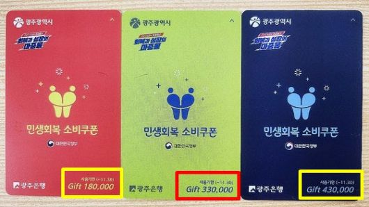 광주시가 지급한 민생회복 소비쿠폰 3종 선불카드.(사진=뉴스1) |
