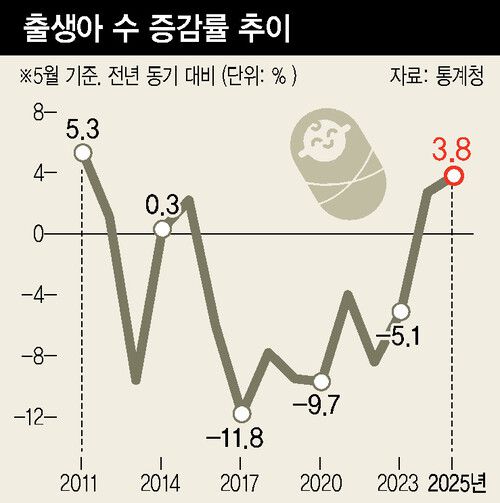 올해 5월 출생아 수가 11개월 연속 증가(전년 동월 대비)한 것으로 나타났다. 주 출산 연령대인 30대 초반 인구가 늘고 정부·지방자치단체의 출산장려정책 등이 영향을 줬다는 분석이 나온다.
