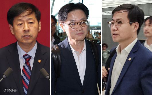 구윤철·김정관·여한구 ‘무거운 어깨’ 대미 관세 협상차 출국을 하루 앞둔 구윤철 부총리 겸 기획재정부 장관이 23일 국회 본회의에서 인사말을 하고 있다(왼쪽 사진). 관세 협상을 위해 방미하는 김정관 산업통상자원부 장관이 이날 인천국제공항 제2터미널 출국장으로 향하고 있다(가운데). 여한구 산업부 통상교섭본부장이 관세 협상을 위해 22일(현지시간) 미국 워싱턴 인근 덜레스 국제공항에 도착하고 있다. 권도현 기자·연합뉴스 |