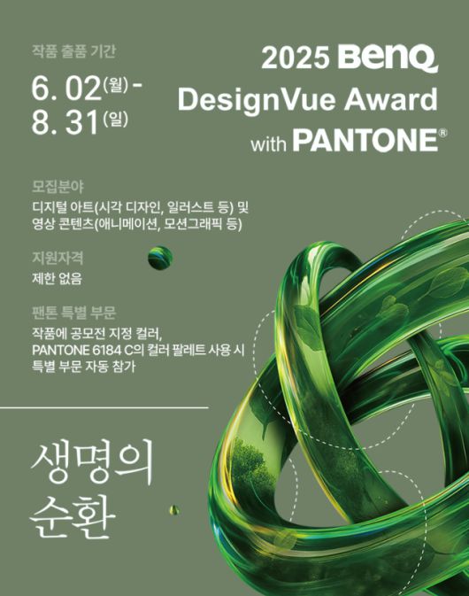 [디지털데일리 김문기 기자] 벤큐코리아(대표 소윤석)는 디지털 아트 및 영상 콘텐츠 분야의 디자인 공모전 ‘2025 벤큐코리아 디자인뷰 어워드 with 팬톤’을 개최한다고 23일 발표했다.