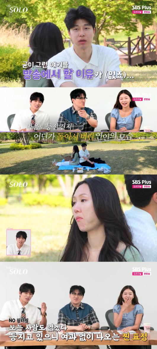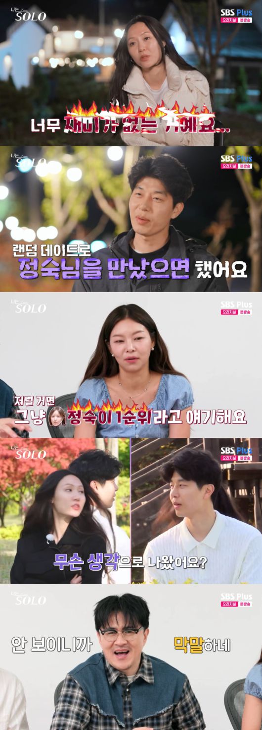 이어 영숙의 표정을 본 이이경은 "등지고 있으니까 표정이 여과 없이 나온다"라고 말했고, 데프콘은 "영숙씨도 현타가 오는거다. 이게 데이트인가 싶기도 하고"라고 거들었다.