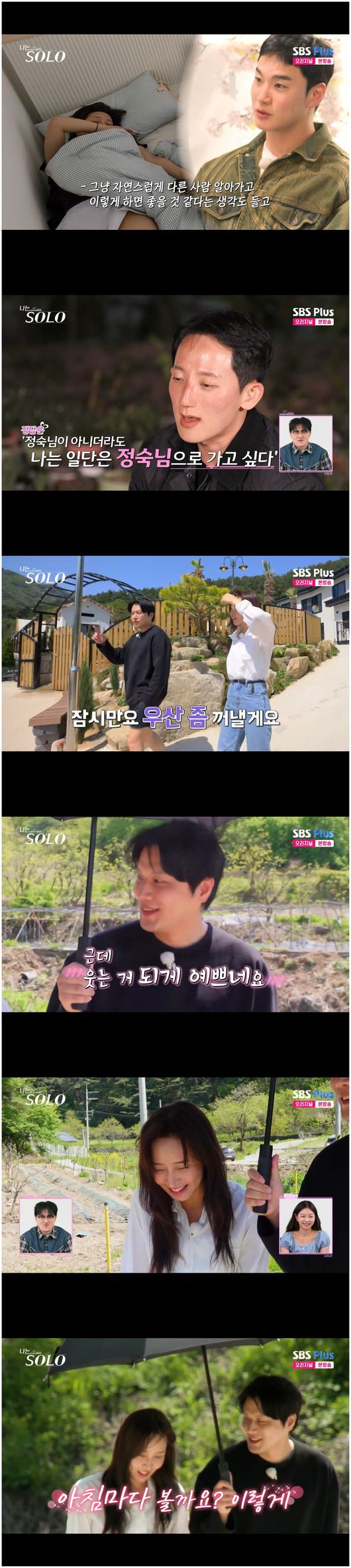 광수는 지고지순한 마음이었다. 광수는 “정숙에게 저는 남자로 안 보이는 순위라고 생각을 들었지만, 제 마음의 소리는 정숙을 선택하고 싶더라. 어쨌든 제가 느끼는 감정에 최선을 다하고 싶었다”라며 3일째 되는 아침, 여전하다는 마음을 드러냈다.