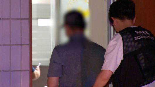 잠시 뒤, 회색 티셔츠를 입은 남성이 경찰에 끌려갑니다.