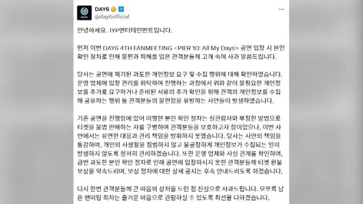 논란이 커지자 소속사 측은 실제 관람자와 불법 판매자를 구별하기 위해 본인 확인 절차가 진행됐는데, 유연하게 대응하지 못했다며 사과했습니다.