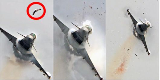 갈매기 한 마리가 8500만 달러(약 1275억 원)짜리 유로파이터 타이푼(Eurofighter Typhoon) 전투기와 부딪히는 모습이 한 사진작가의 카메라에 포착돼 화제다. 22일(현지시간) 영국 일간 텔레그래프는 지난 6월 15일 스페인 산 하비에르 공군기지에서 열린 유로파이터 에어쇼에서 유로파이터 전투기가 비행 중 갈매기와 부딪히며 조종석 유리가 산산이 조각났다고 보도했다.