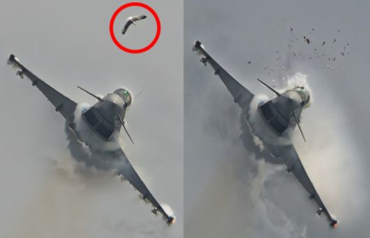 당시 상황이 포착된 사진을 보면 전투기 앞에 갈매기가 있고 이후 사진에는 부서진 전투기 파편이 흩어지는 모습이 담겼다. 이 사진은 항공 사진작가 하이베르 알론소 데 메디아 살게로는 우연히 포착했고 촬영 당시는 몰랐던 것으로 알려졌다.