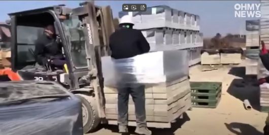 영상에는 동료로 보이는 남성들이 스마트폰으로 촬영을 하는 가 하면 크게 웃고 있는 모습이 담겼다. 영상을 게시한 언론은 ‘취재 결과 지게차 운전자는 한국인’이라고 자막을 실었다.