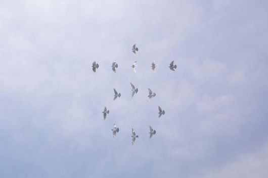 문선희 작가는 작품에서 비둘기의 나는 모습을 한글 자음 ㅎ으로 배열했다. 문선희 작가 제공 |