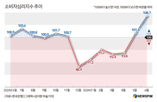 [세종=뉴스핌] 양가희 기자 = 새 정부의 강력한 확장 재정 기조에 소비심리 회복 조짐을 보이고 있지만, 불안감은 여전히 남아있다. 특히 미국 도널드 트럼프 대통령이 주도하는 관세 확대 조치가 경기 하방 압력에 크게 작용하고 있다는 분석이 지배적이다.