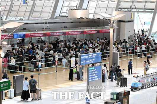 [더팩트ㅣ인천국제공항=남용희 기자] 본격적인 여름 휴가철이 시작된 24일 인천국제공항 제1여객터미널 출국장이 해외여행을 떠나는 여행객들로 북적이고 있다.