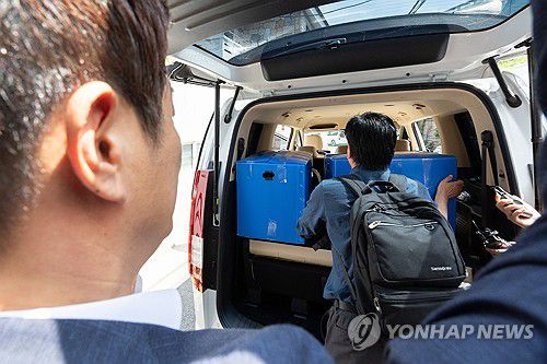 (서울=연합뉴스) 서대연 기자 = '12·3 비상계엄' 관련 내란·외환 사건을 수사하는 조은석 특별검사팀이 24일 서울 종로구에 있는 한덕수 전 국무총리 자택 압수수색을 마친 뒤 압수품을 차량에 싣고 있다. 2025.7.24 [공동취재]