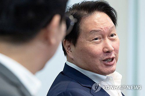 (서울=연합뉴스) 신현우 기자 = 최태원 대한상공회의소 회장(오른쪽)이 24일 서울 중구 대한상공회의소를 방문한 김영훈 고용노동부 장관과 대화하고 있다. 2025.7.24 [공동취재]